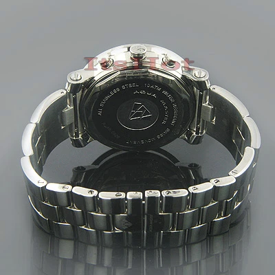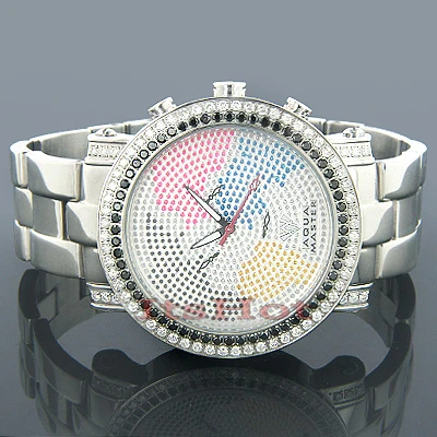 Affordable Aqua Master Watches! This Worldface Men’s Diamond Watch features 4.50 carats of white and black diamonds and a world map face with three mother of pearl chronograph subdials on it. This versatile Aqua Master wrist watch showcases a fine Swiss-made quartz chronograph movement and is water-resistant to 100 m (330 ft).