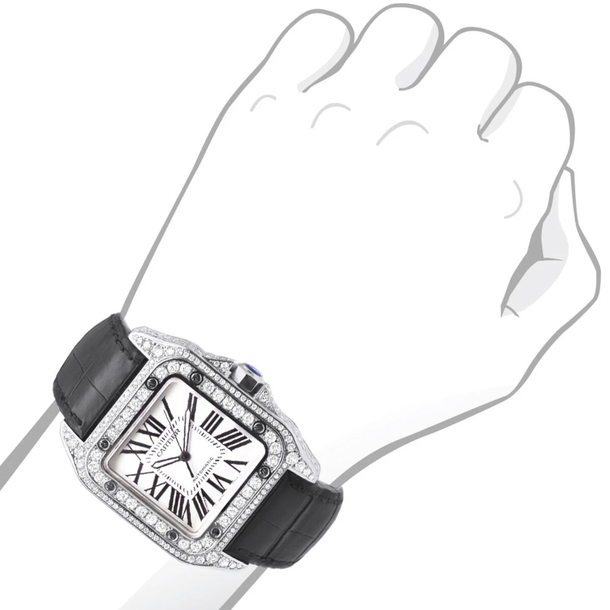 Custom Cartier Santos 100 Men’s Diamond Watch 6.92ct