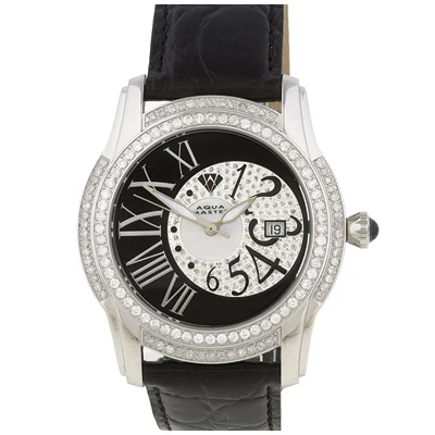 This Unisex Diamond Watches Aqua Master Diamond Watch features 1.70 carats of white diamonds masterfully set around the bezel, and a black & white face. This diamond Aqua Master watch showcases a fine Swiss-made ETA movement and is water-resistant.
