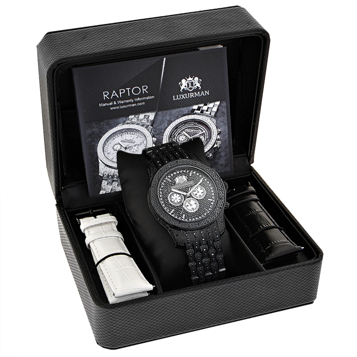 Hip Hop Oversized Luxurman Escalade Men’s Black Diamond Watch 3/4ct