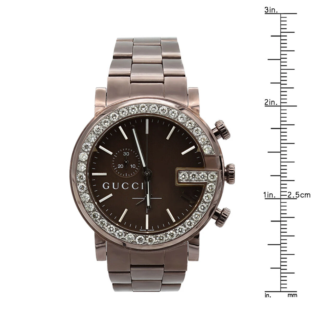 Genuine Diamond Bezel Watch For Men Gucci Chrono 101M Brown YA101341 2ct