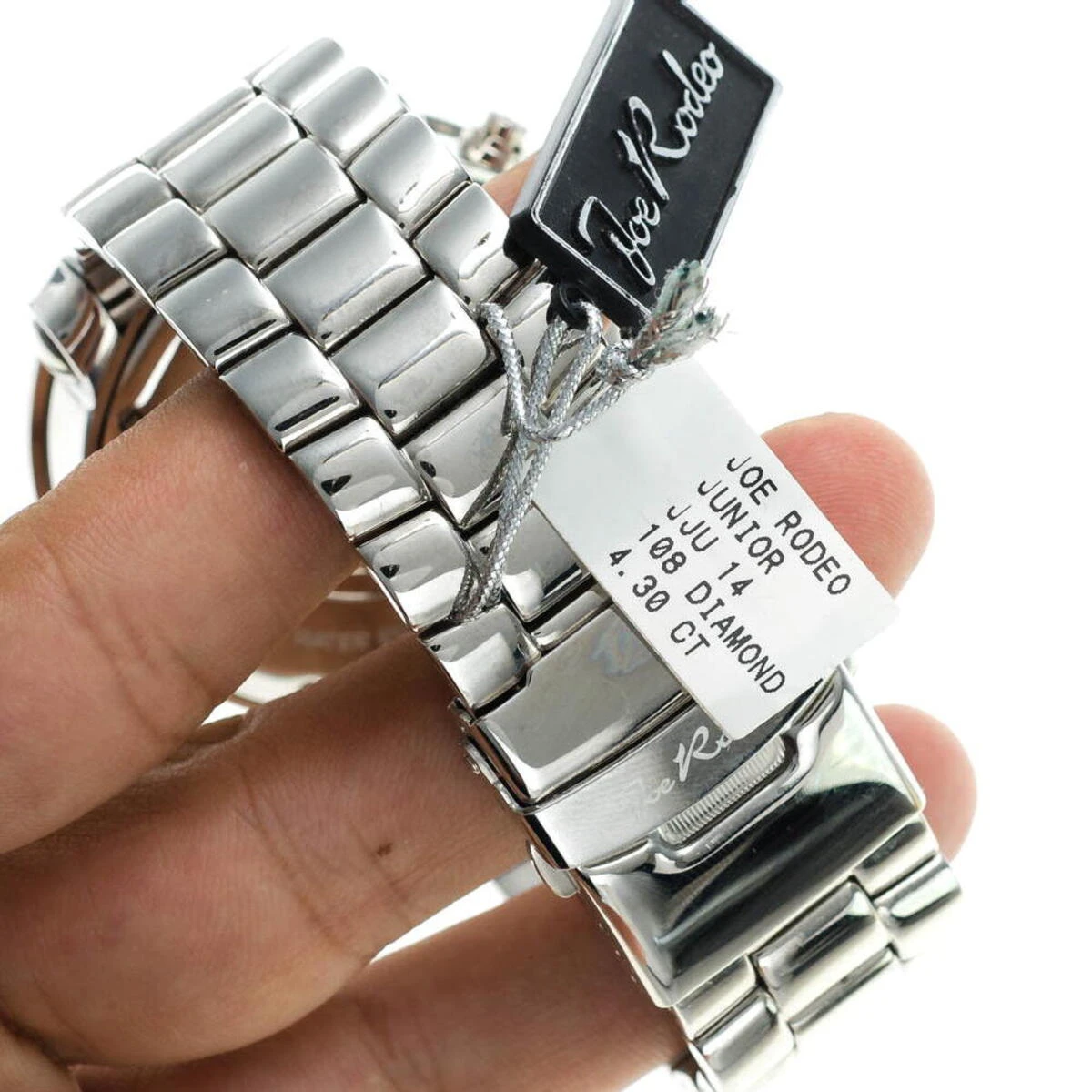 The Joe Rodeo Junior 4.3.ct JJU14 Watch is the perfect choice for the modern man who wants a stylish and sophisticated timepiece. This watch features a stainless steel case with a diameter of 49mm, making it a great choice for any wrist size. The watch is powered by a Swiss-Quartz movement, ensuring accuracy and reliability. The watch also features a chronograph, date indicator, and second hand-indicator, making it a great choice for those who need to keep track of time.The watch also features a total carat weight of 4.3000, making it a great choice for those who want to make a statement. The watch also features a water resistance of 10 ATM, making it a great choice for those who need a watch that can withstand the elements. The watch also features a sleek and stylish design, making it a great choice for any occasion.The Joe Rodeo Junior 4.3.ct JJU14 Watch is the perfect choice for the modern man who wants a stylish and sophisticated timepiece. This watch features a stainless steel case with a diameter of 49mm, making it a great choice for any wrist size. The watch is powered by a Swiss-Quartz movement, ensuring accuracy and reliability. The watch also features a chronograph, date indicator, and second hand-indicator, making it a great choice for those who need to keep track of time. The watch also features a total carat weight of 4.3000, making it a great choice for those who want to make a statement.The Joe Rodeo Junior 4.3.ct JJU14 Watch is the perfect choice for the modern man who wants a stylish and sophisticated timepiece. This watch is designed to be a timeless classic, with its sleek and stylish design and its durable construction. The watch is perfect for any occasion, from the office to the beach. The watch is also water resistant up to 10 ATM, making it a great choice for those who need a watch that can withstand the elements.The Joe Rodeo Junior 4.3.ct JJU14 Watch is the perfect choice for the modern man who wants a stylish and sophisticated timepiece. This watch is designed to be a timeless classic, with its sleek and stylish design and its durable construction. The watch is perfect for any occasion, from the office to the beach. The watch is also water resistant up to 10 ATM, making it a great choice for those who need a watch that can withstand the elements. The watch also features a total carat weight of 4.3000, making it a great choice for those who want to make a statement. The Joe Rodeo Junior 4.3.ct JJU14 Watch is the perfect choice for the modern man who wants a stylish and sophisticated timepiece.