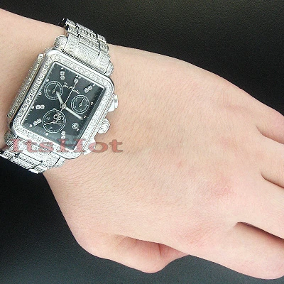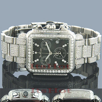 Fabulous Joe Rodeo Watches! This Joe Rodeo Madison Diamond Watch is paved in 10.25 carats of genuine diamonds, each masterfully set around the bezel, on the sides of the silver tone stainless steel case, lugs and the band. The black mother of pearl face features three chronograph subdials and a date display at 4 o’clock. This luxurious Joe Rodeo diamond watch is conveniently water resistant and comes with 2 extra watch bands in different colors.
