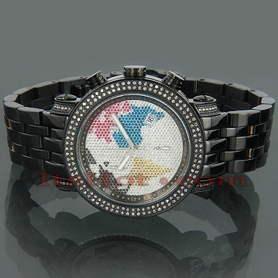 Introducing the new black JoJo Joe Rodeo Watch – Classic World Map diamond chronograph! This impressive timepiece is adorned with 1.75 carats of diamonds that make a perfect combination with its black stainless steel band and case. This men’s diamond watch from Joe Rodeo watches collection has a Swiss-made chronograph quartz movement that is mounted in solid stainless steel case which is water resistant to 100M (330 FT). Comes with two interchangeable bands.