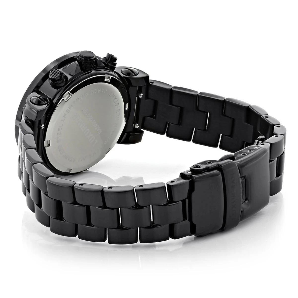 Luxurman Black Diamond Watch For Men 2ct Fully Iced Out Oversized