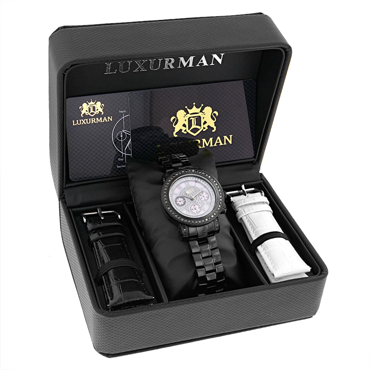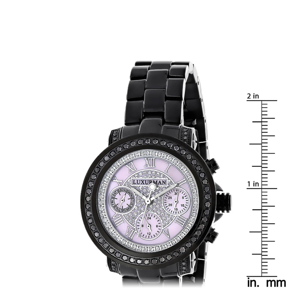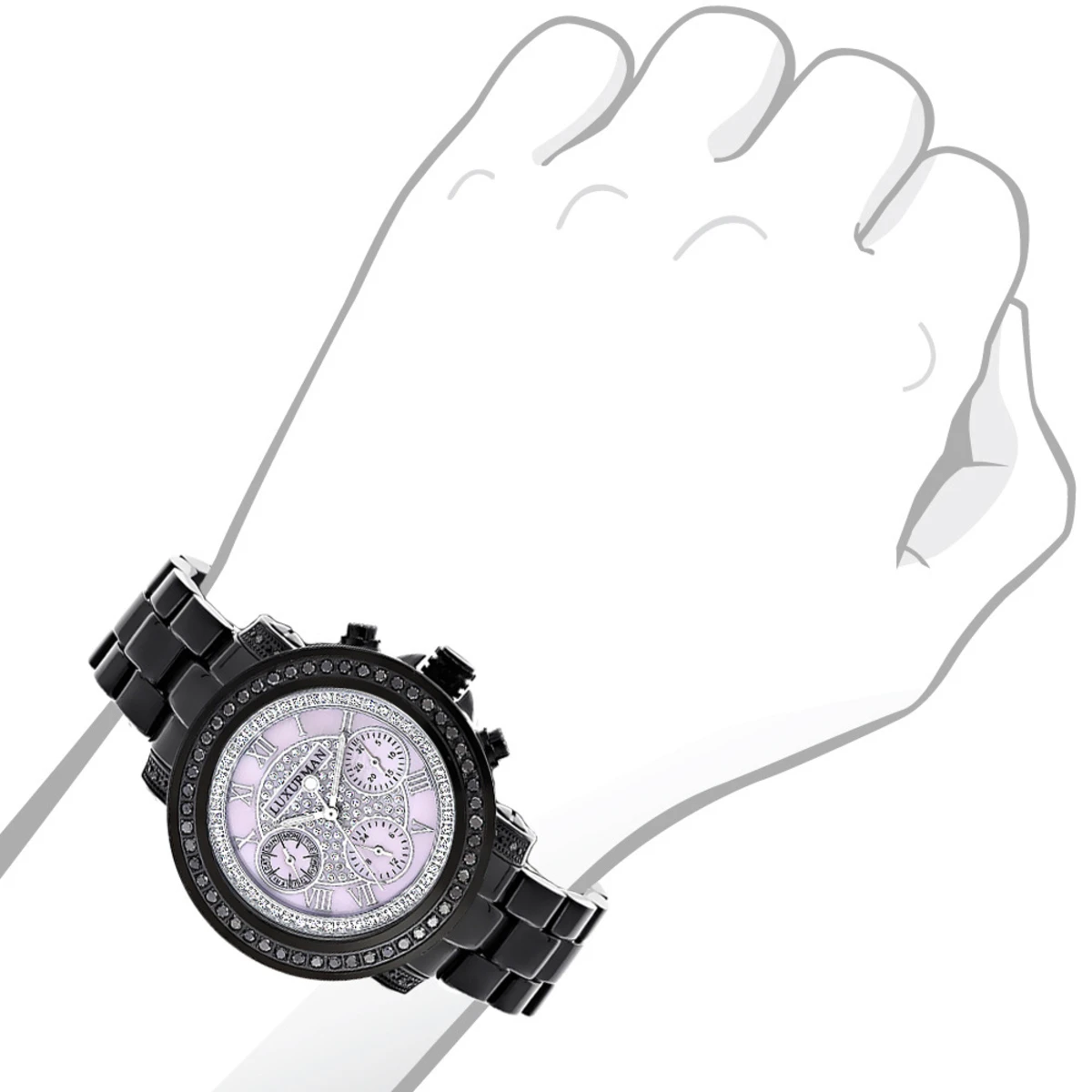 Ladies Diamond Luxurman Black Diamond Watch 2.15 Carats