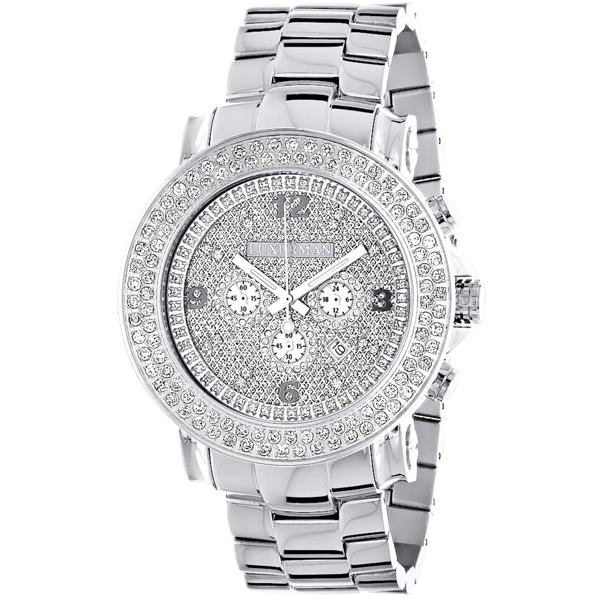 Large 2 Row Diamond Bezel Luxurman Watch 5ct New Arrival Oversized