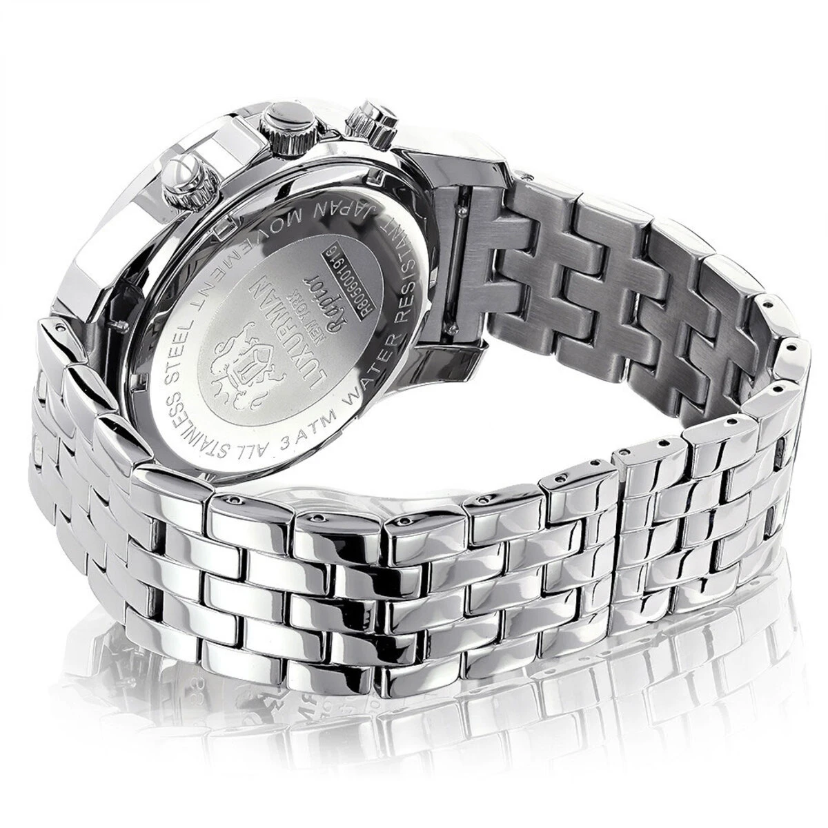 Large 46mm Affordable Real Diamond Watch For Men Luxurman Raptor 0.25ct Steel Band