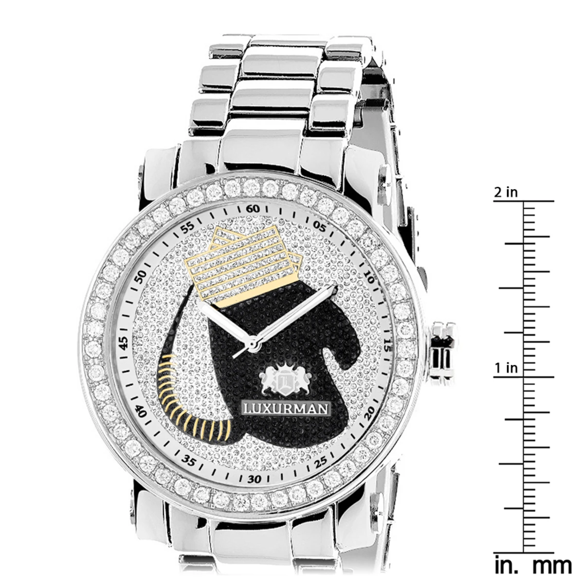 Large Diamond Men’s Watch With Boxing Gloves 4 CT Luxurman Southpaw Edition