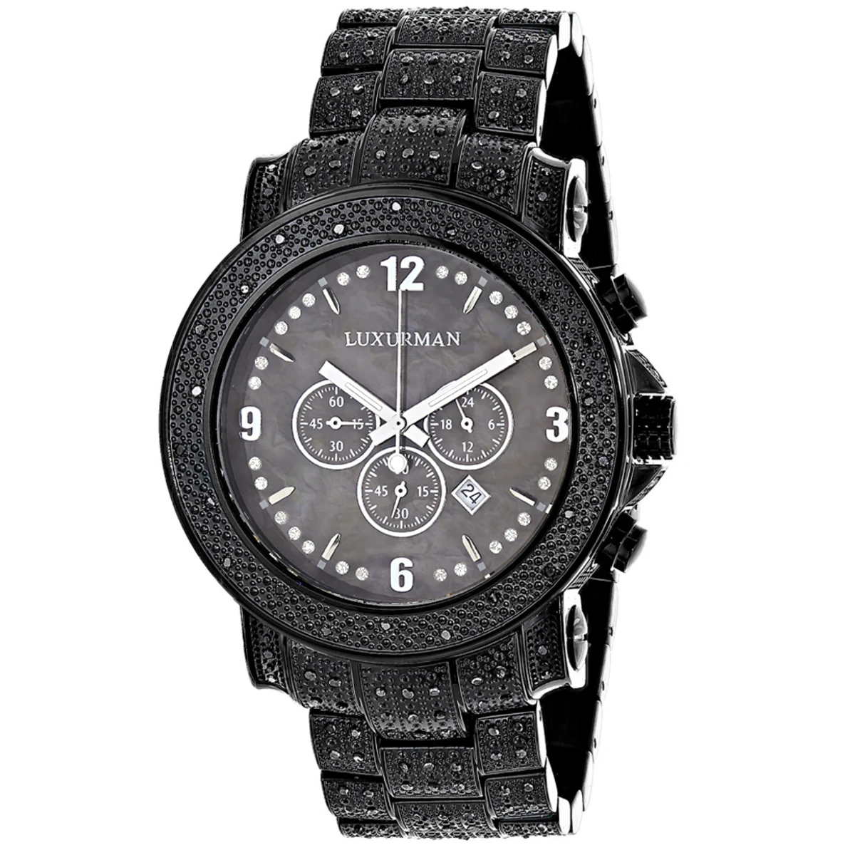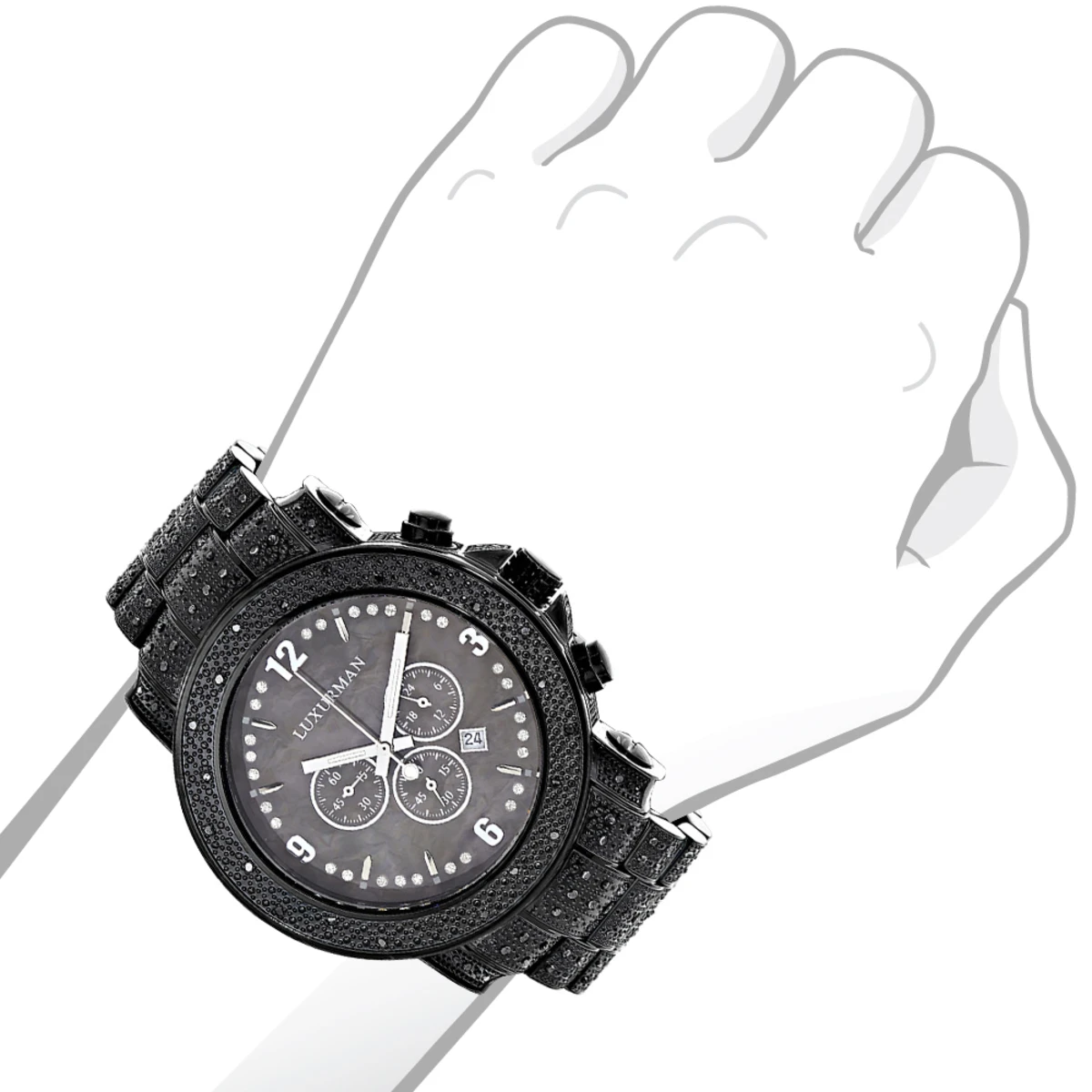 Luxurman Black Diamond Watch For Men 2ct Fully Iced Out Oversized