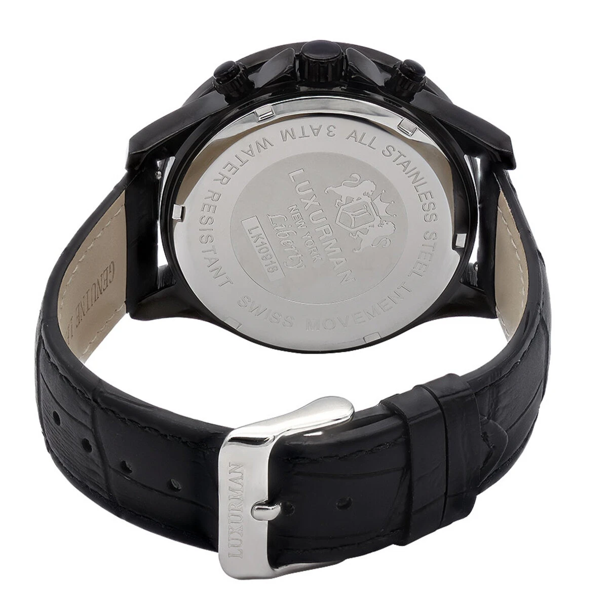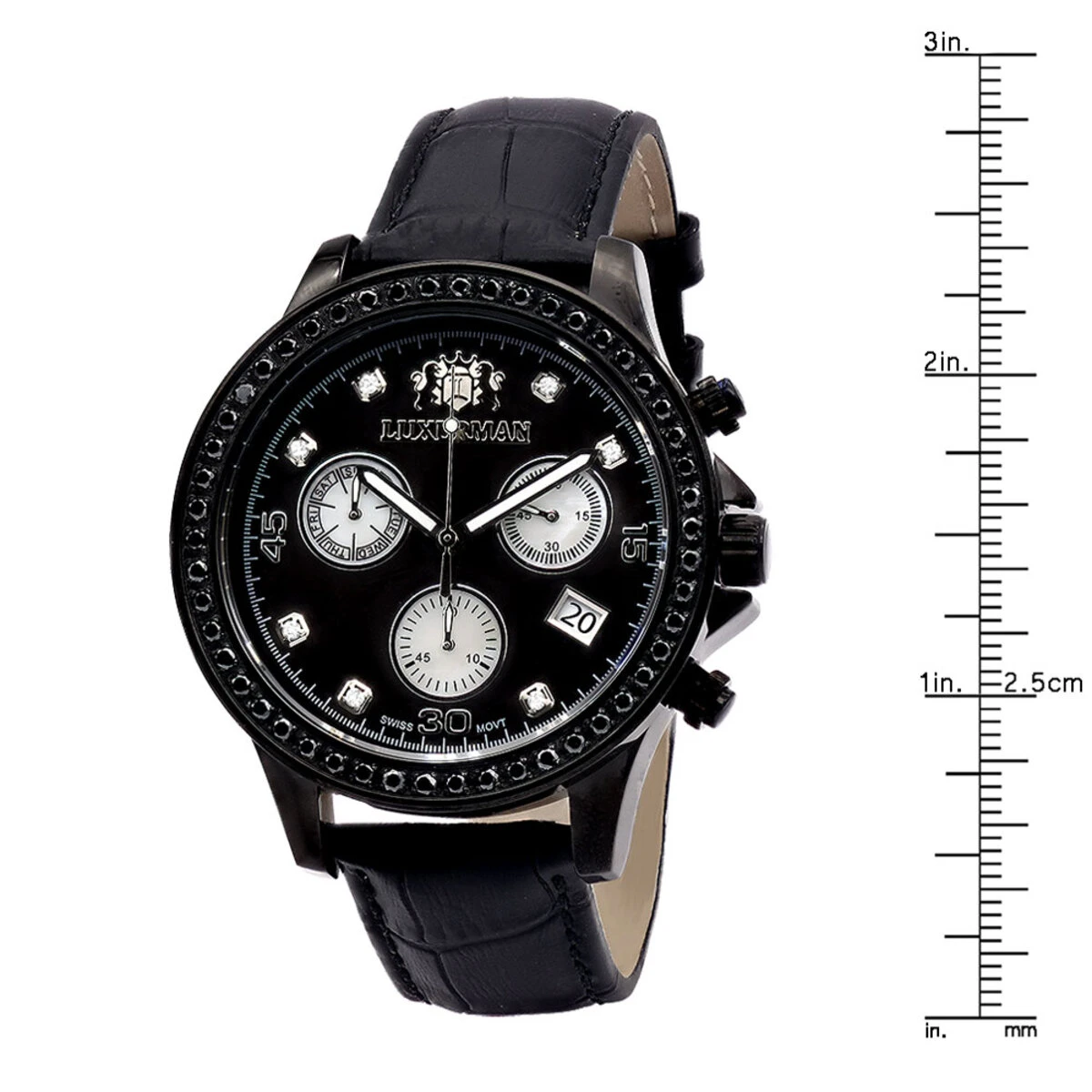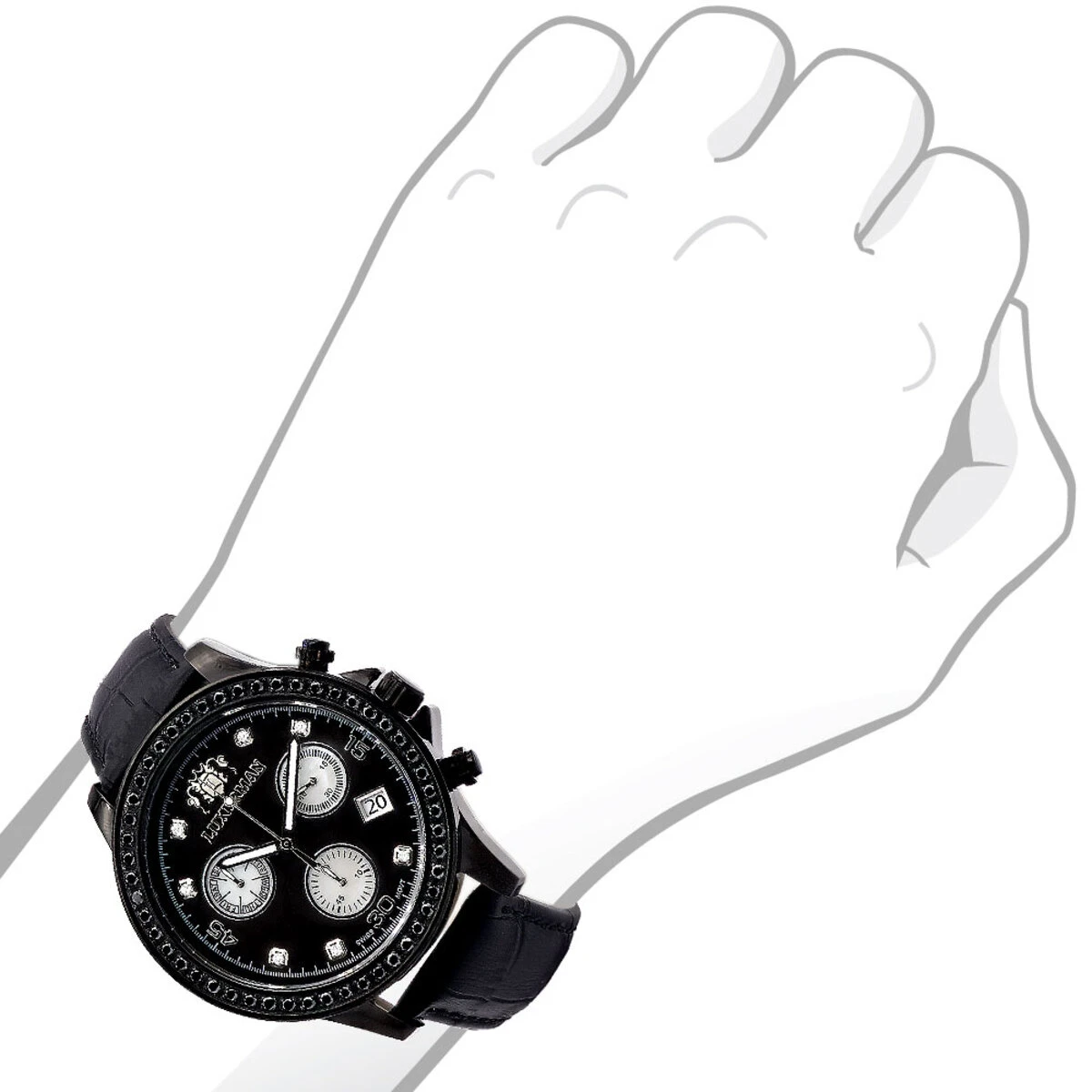 Luxurman Liberty Men’s Diamond Watch Black Leather Band 44mm Bezel 2ct Swiss