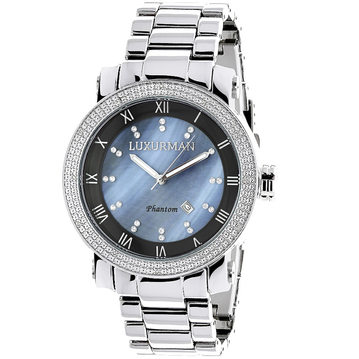 Luxurman Men’s Diamond Watch 0.12ct Blue MOP Large 49mm Watch