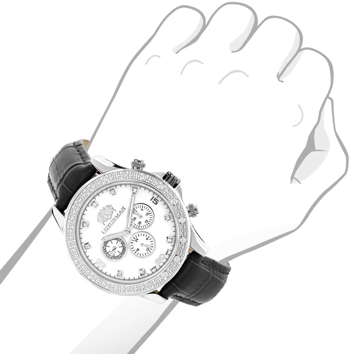 Luxurman Men’s Diamond Watch 0.2ct Swiss Quartz Liberty W Leather Band