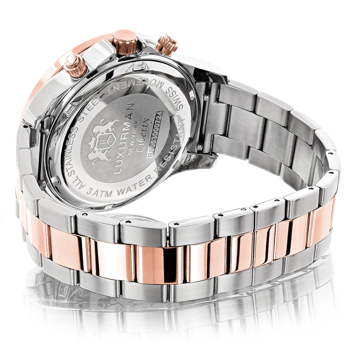 Luxurman Men’s Diamond Watch Two-Tone White Rose Gold Pltd Liberty Swiss Mvt