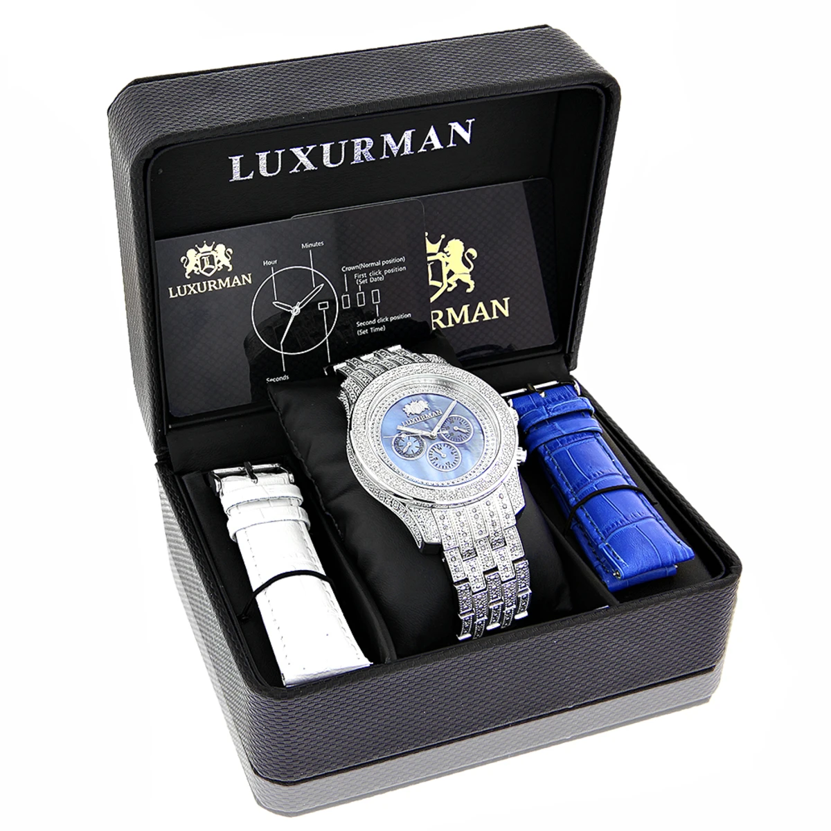 Luxurman Men’s Real Diamond Wrist Watch 1.25ct