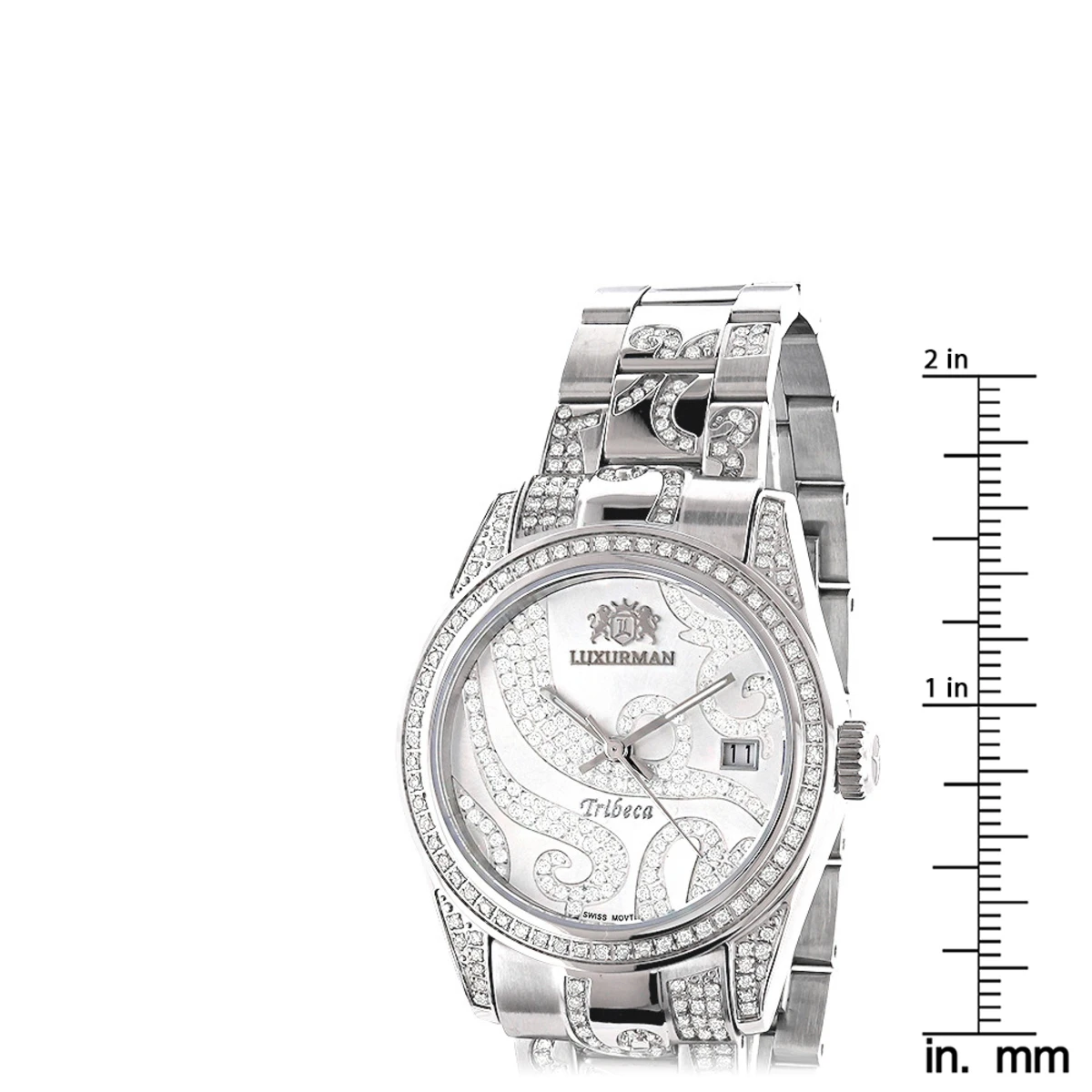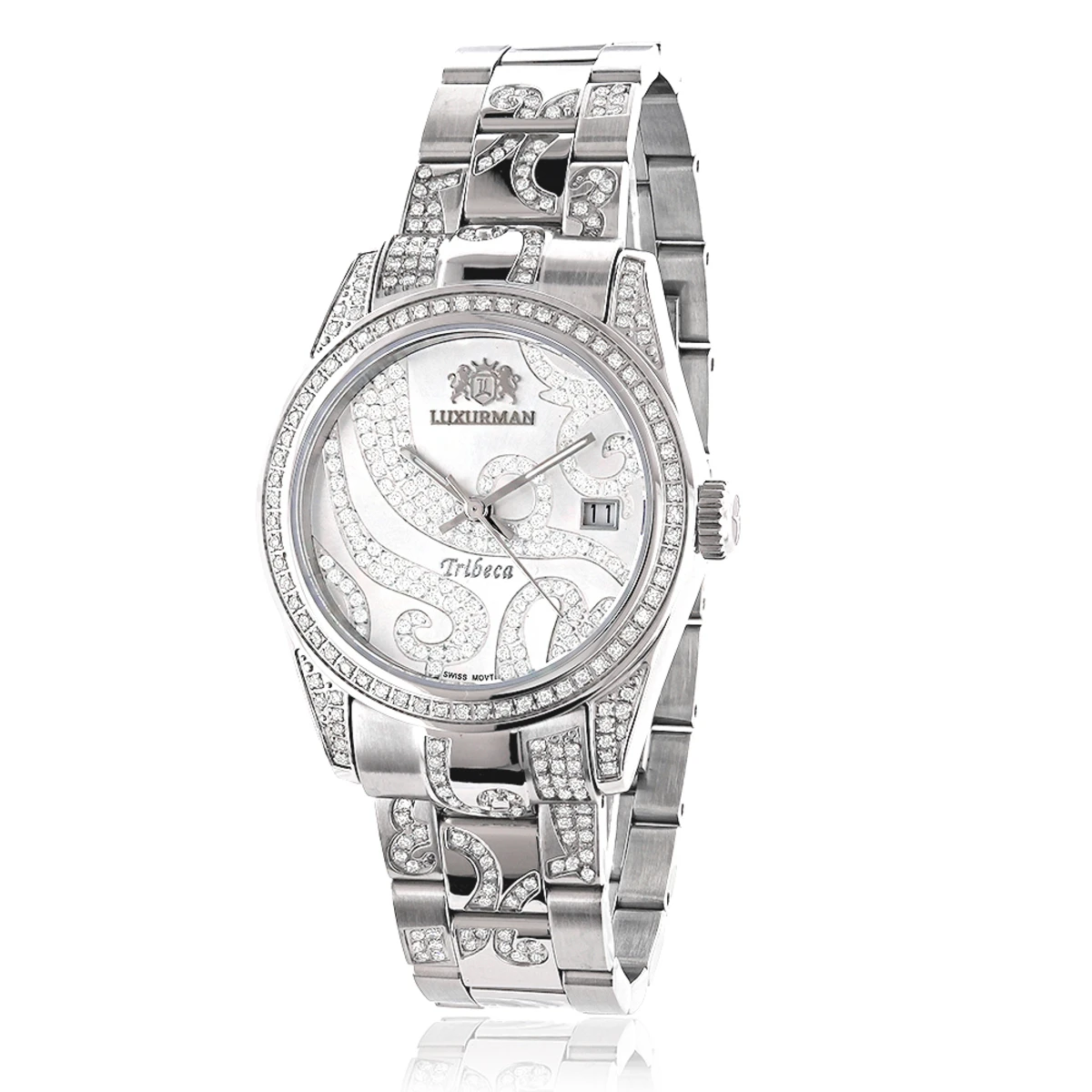 Luxurman Tribeca Women’s Diamond Bezel & Band Watch 3ct Platinum Plated