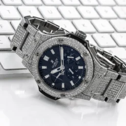 Bust Down Hublot Diamond Watch For Men 44mm Big Band Aero Black Dial 16.5ct