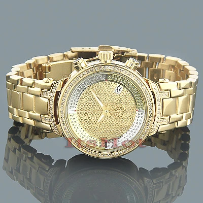 This impressive 0.90-carat Master Ladies JOJO Diamond Watch features a scratch-free crystal glass, an individually numbered and engraved stainless steel case-back, a genuine diamond bezel, a polished yellow gold Tone Stainless Steel case, a yellow crystal dial, a fine Swiss-made quartz movement with a chronograph function, a center second and date. This women’s Joe Rodeo diamond watch is water-resistant to 50 meters and comes with two interchangeable straps in different colors. The patented strap adjusts once for a perfect fit, and comes on and off with the press of a button.