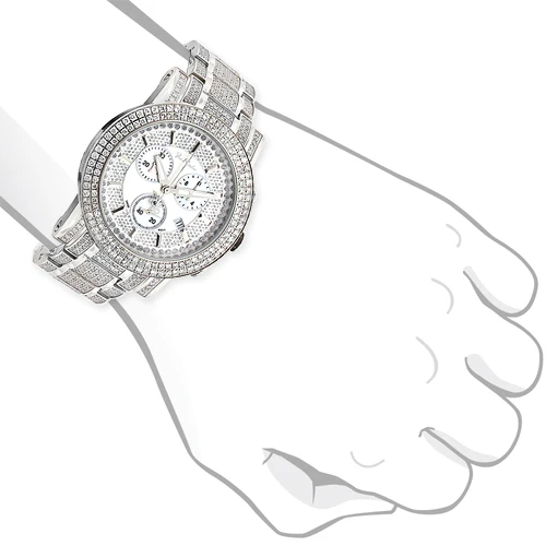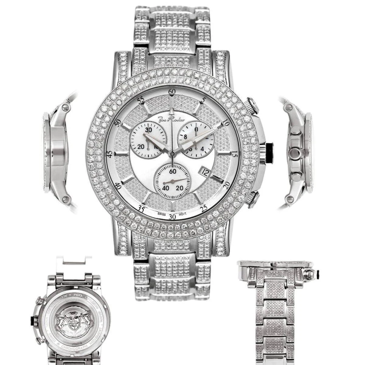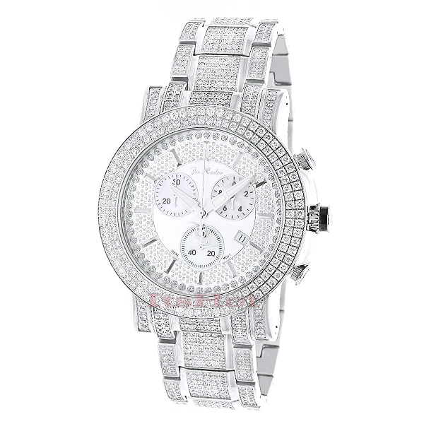 Introducing new men’s Diamond Watch Joe Rodeo Trooper that features 14.50 carats of diamonds sparkling from its bezel, lugs and stainless steel band. The silver stainless steel face has three large white chronograph subdials and date display window at 4 o’clock position. This iced out watch from Joe Rodeo comes with a fine Swiss-made quartz movement with chronograph function, center second and date. Water-resistant to 100 meters. Comes with two interchangeable straps in different colors. The patented strap adjusts once for a perfect fit, and comes on and off with the press of a button.