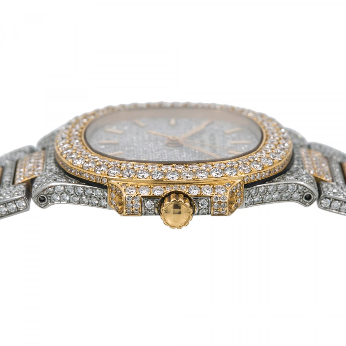 Men’s Diamond Watch Patek Philippe Nautilus 18K Gold 37mm Silver Tone Dial