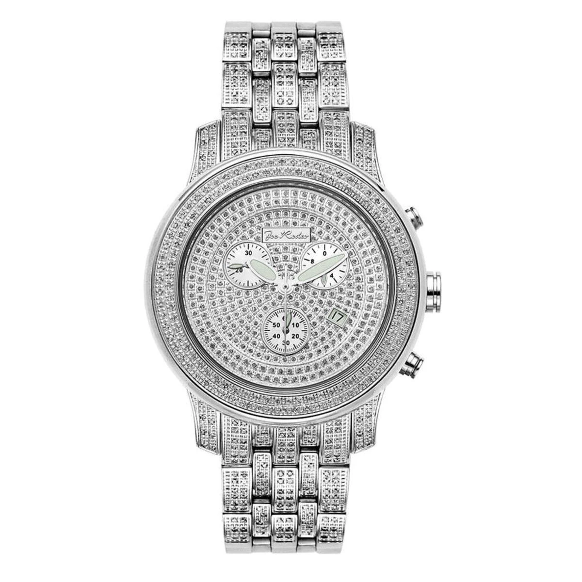 This Men’s Joe Rodeo Watch with a Diamond Band is adorned with 3.50 carats of authentic diamonds that really sparkle! With diamonds on the bezel and lugs, this men’s diamond watch from iced out watches collection by Joe Rodeo features diamonds going half way around the strap. The Swiss-made chronograph quartz movement sits in the stainless steel case that is water resistant to 100M (330 FT). Comes with extra two interchangeable leather bands.
