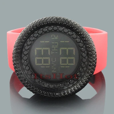 Trendy Hip Hop Watches: This Jojino Black Crystal Watch features sparkling black crystals around the black tone stainless steel case, a neon red rubber band, and a digital dial code. This unique watch makes a great gift for any occasion!